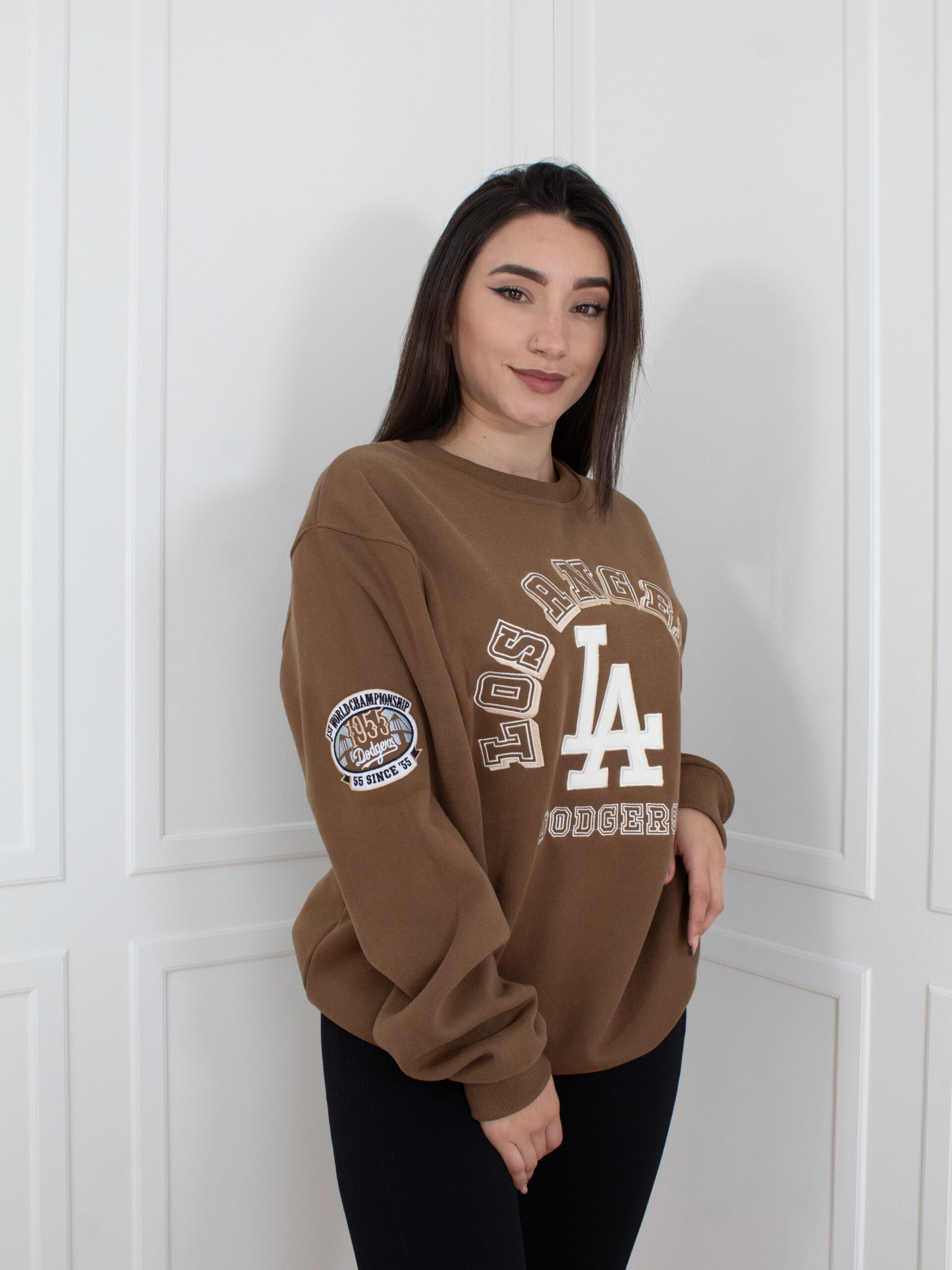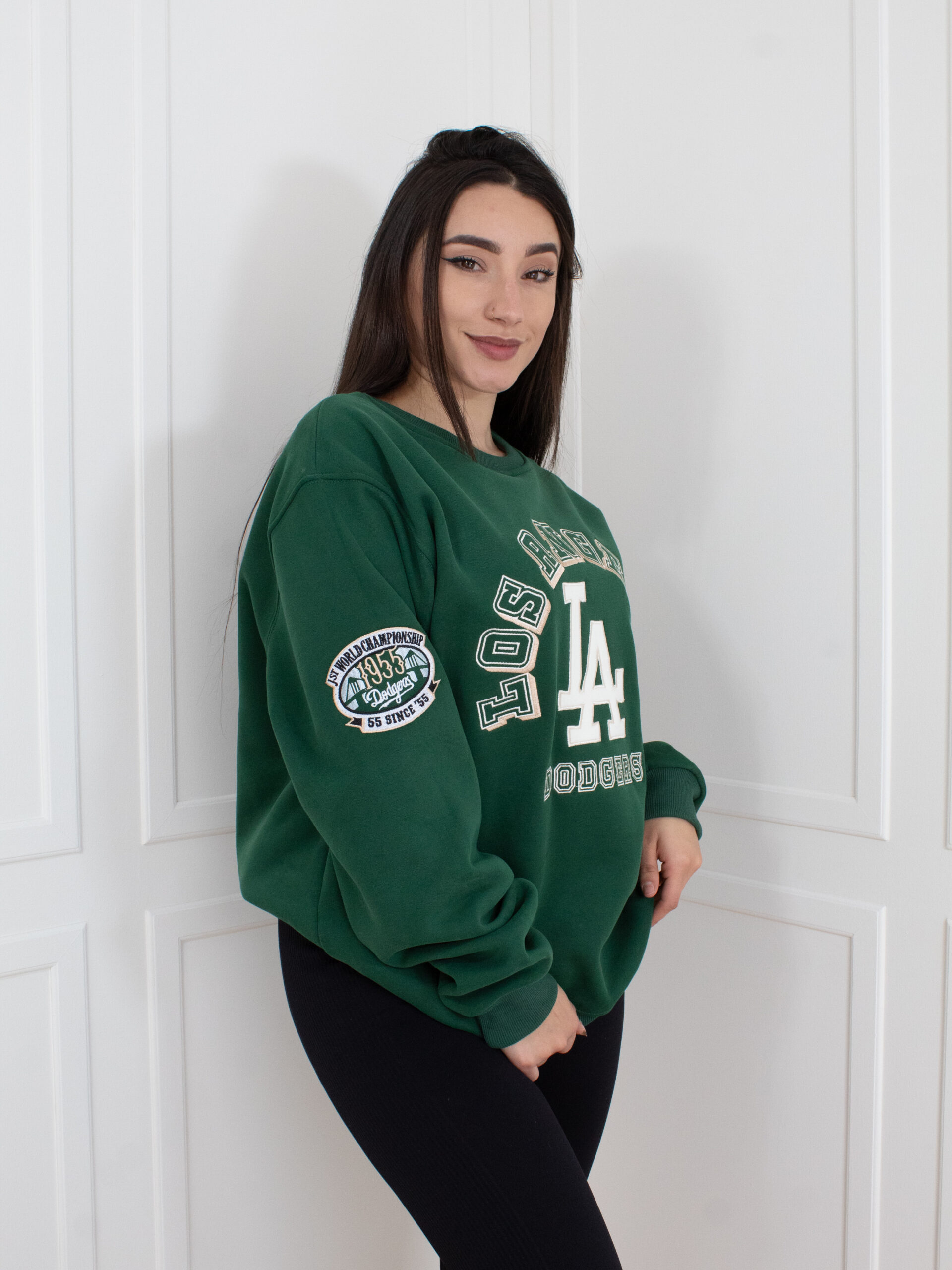 Buzo con diseño deportivo y estampado frontal inspirado en Los Angeles Dodgers.
