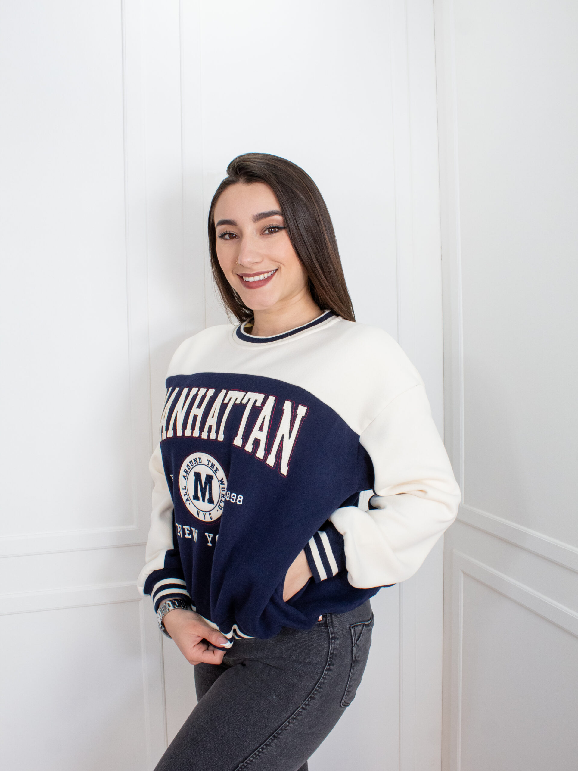 Buzo de estilo urbano con diseño inspirado en la esencia clásica de Nueva York. Confeccionado en tejido suave y confortable, ideal para el uso diario. Su silueta moderna ofrece un ajuste cómodo que se adapta fácilmente a diferentes estilos, perfecto para combinar con jeans, pantalones o looks más casuales.