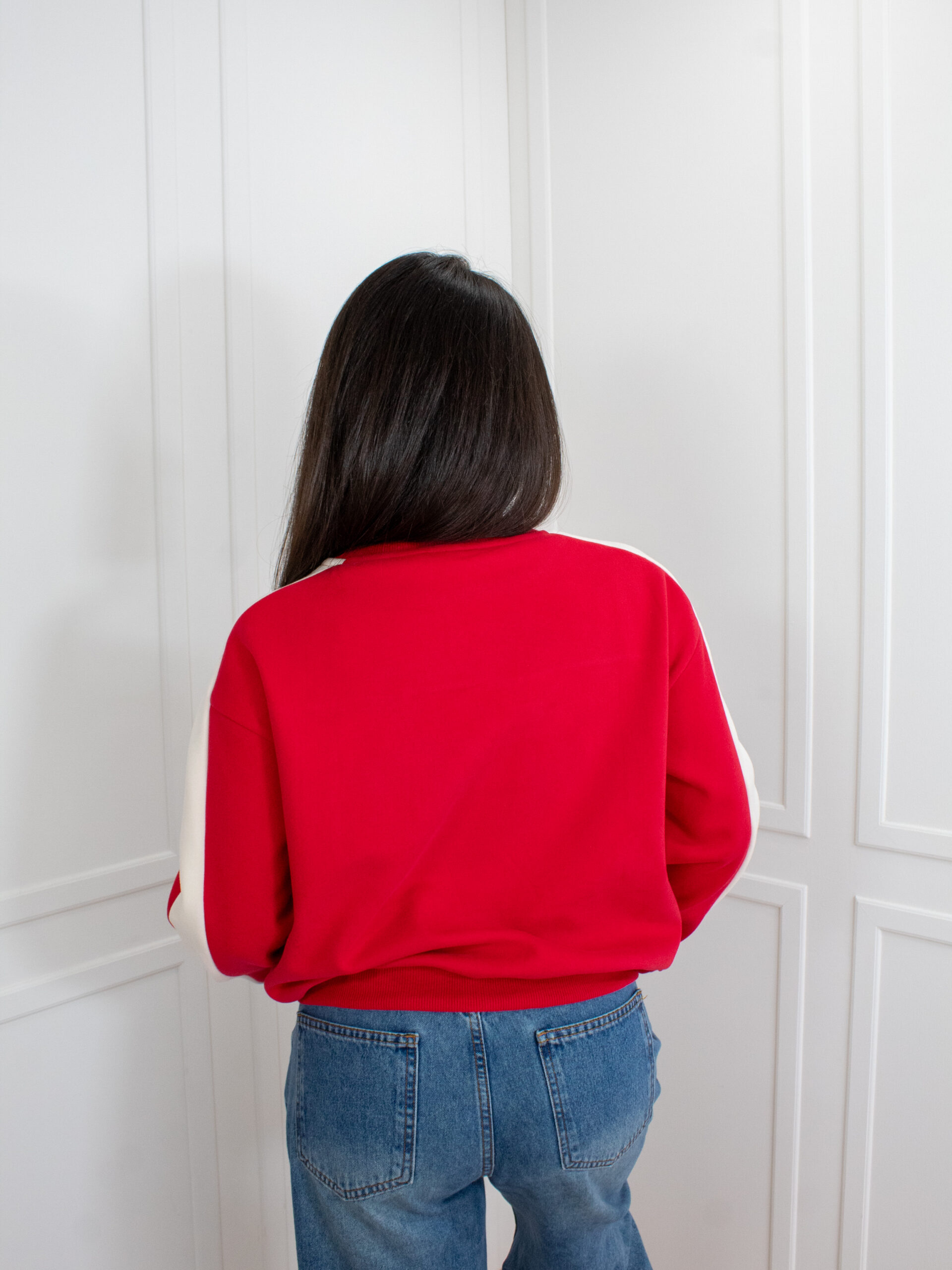 Buzo streetwear con bordado frontal y diseño deportivo.
