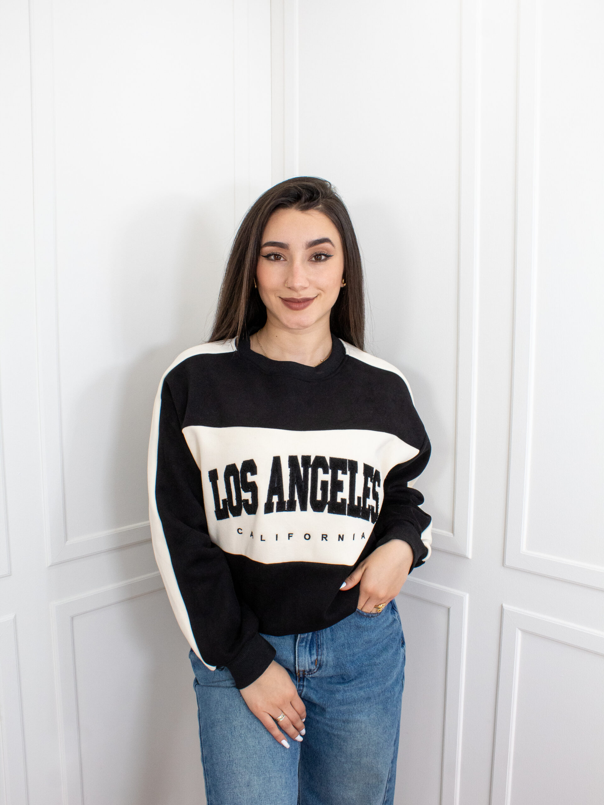 Buzo tipo sudadera con un estilo moderno y relajado, ideal para looks casuales y streetwear. Destaca por su bordado frontal “Los Angeles California”, el cual aporta textura y un acabado de alta calidad. Incluye detalles decorativos en las mangas que complementan su diseño y le dan un toque deportivo. Ajuste clásico que se adapta a diferentes estilos y tipos de cuerpo, perfecto para complementar cualquier outfit.