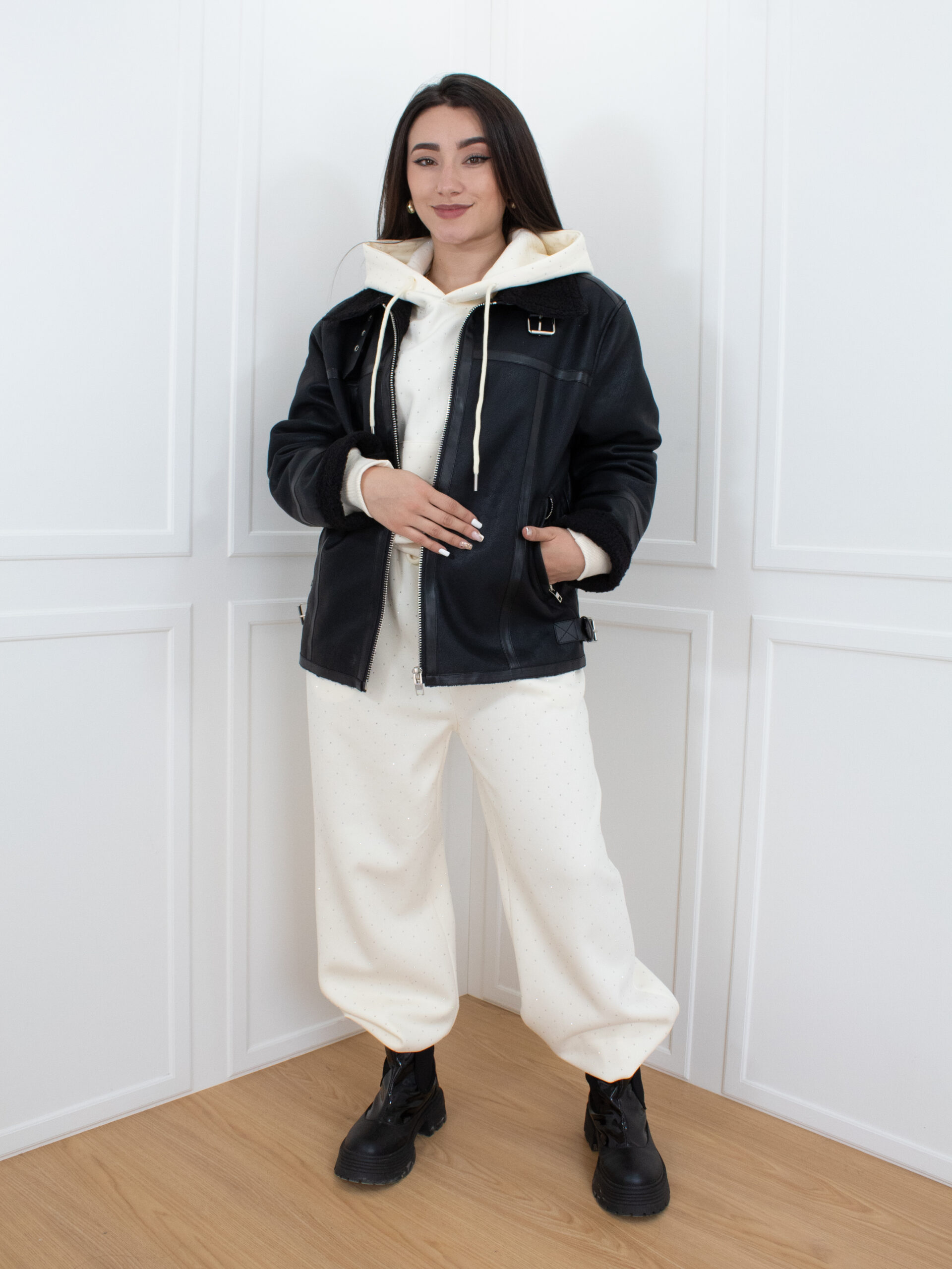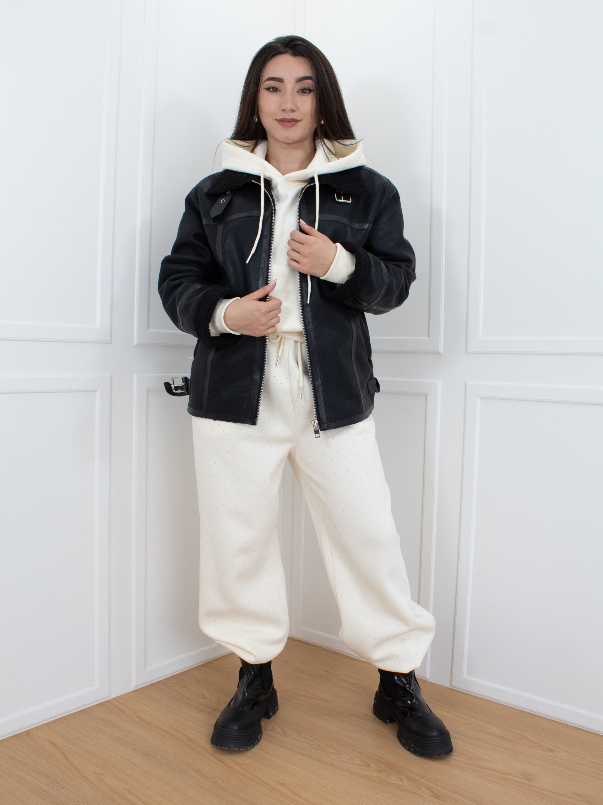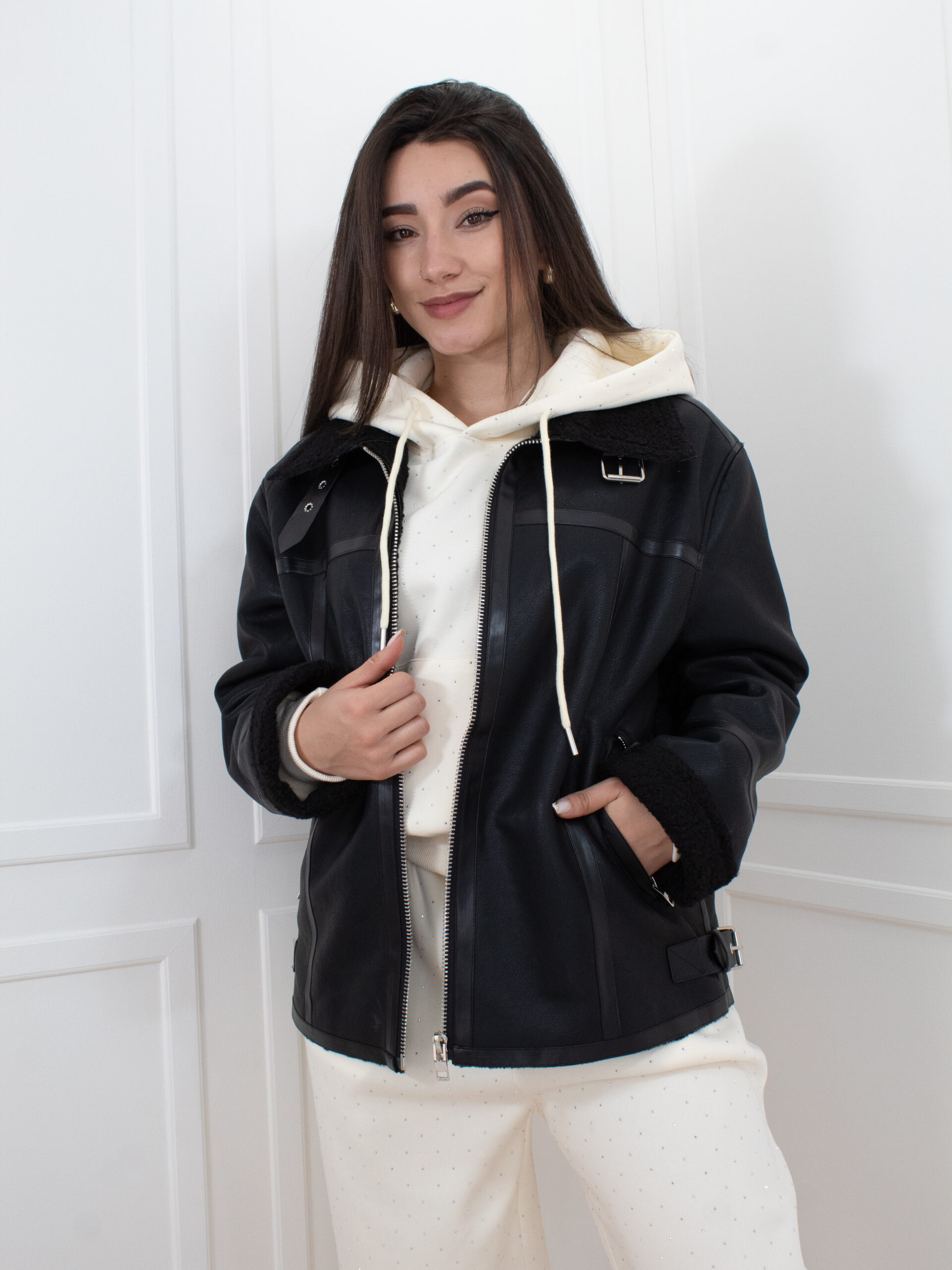 Esta chaqueta de cuerina combina un diseño sofisticado con un toque rebelde, ideal para quienes buscan estilo y actitud en una sola prenda.
