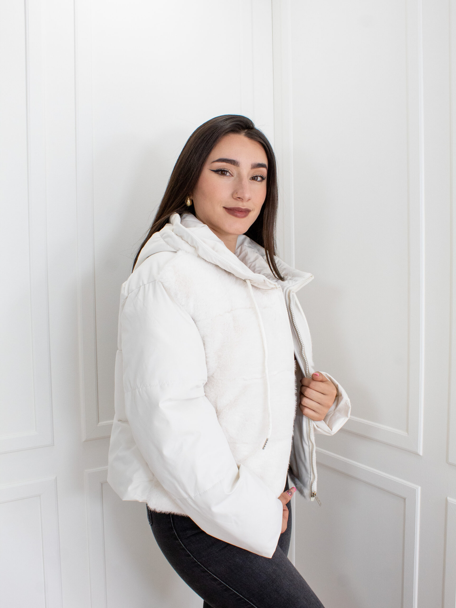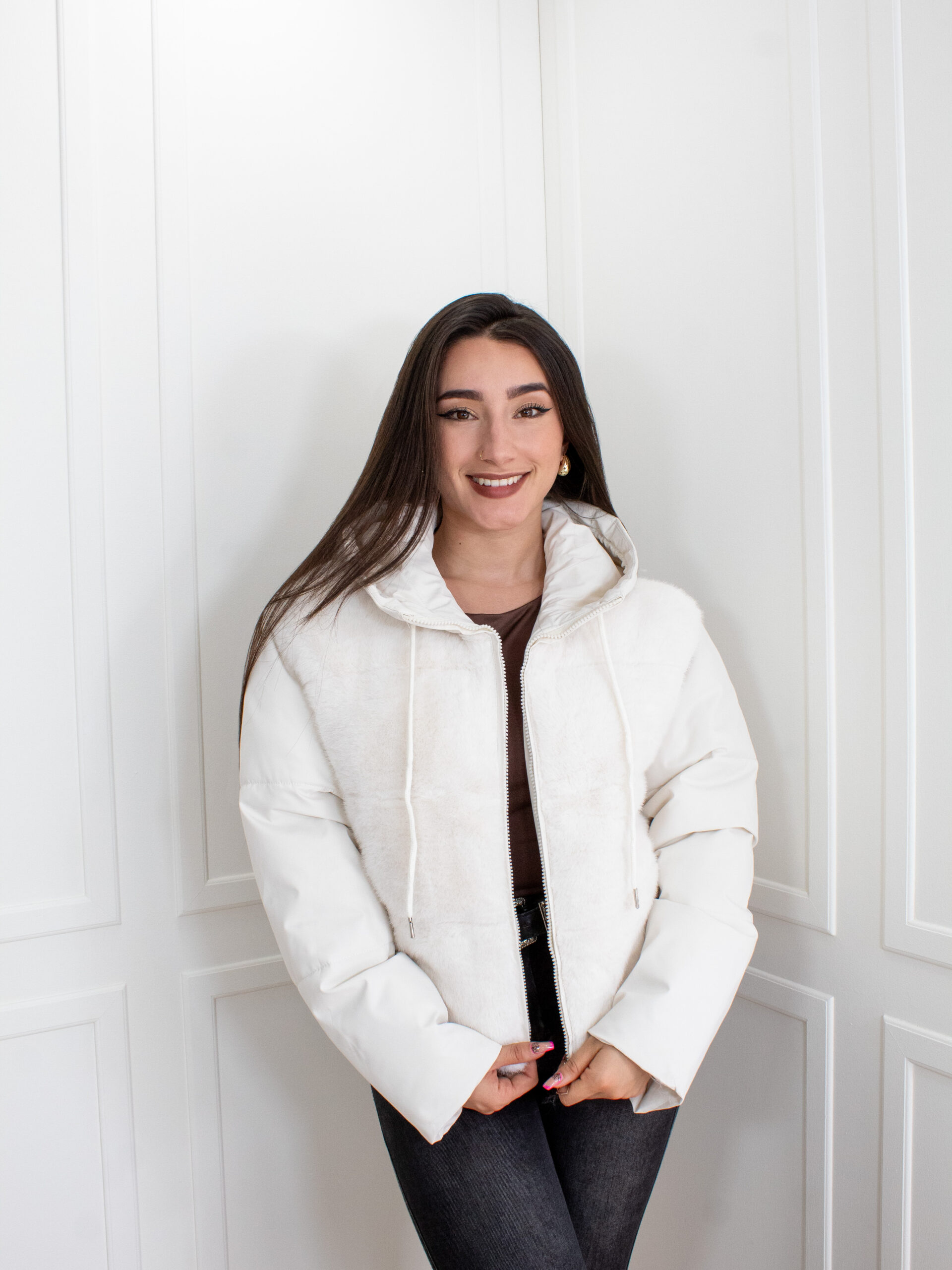 Es la fusión perfecta entre calidez y moda para tus atuendos de clima frío. Su diseño presenta una atractiva combinación de texturas: una sección acolchada en las mangas y la espalda que garantiza aislamiento térmico, y un panel frontal de suave piel sintética que aporta un toque de lujo y sofisticación. Cuenta con una capucha y cierre frontal, ofreciendo máxima protección y un ajuste cómodo..