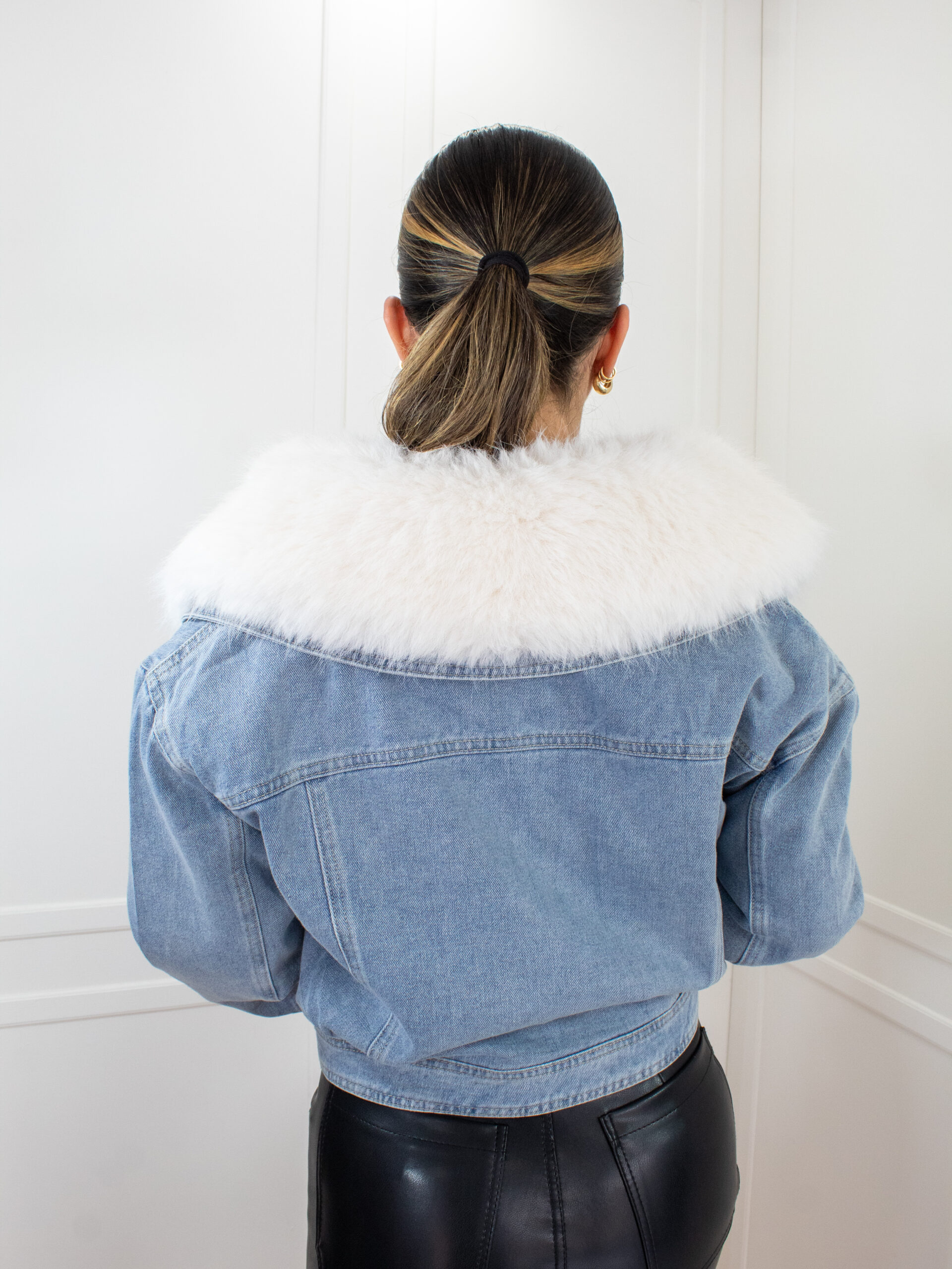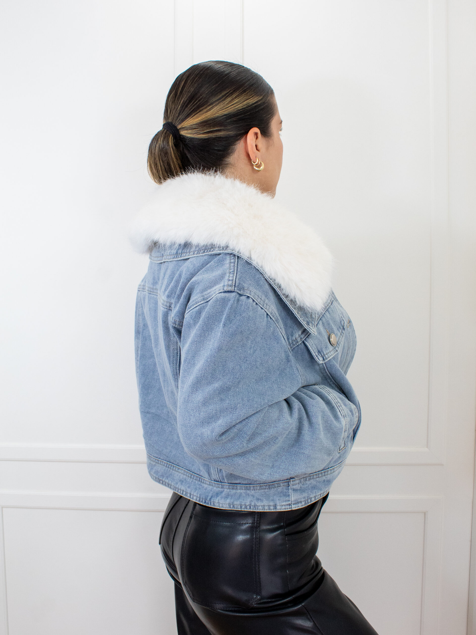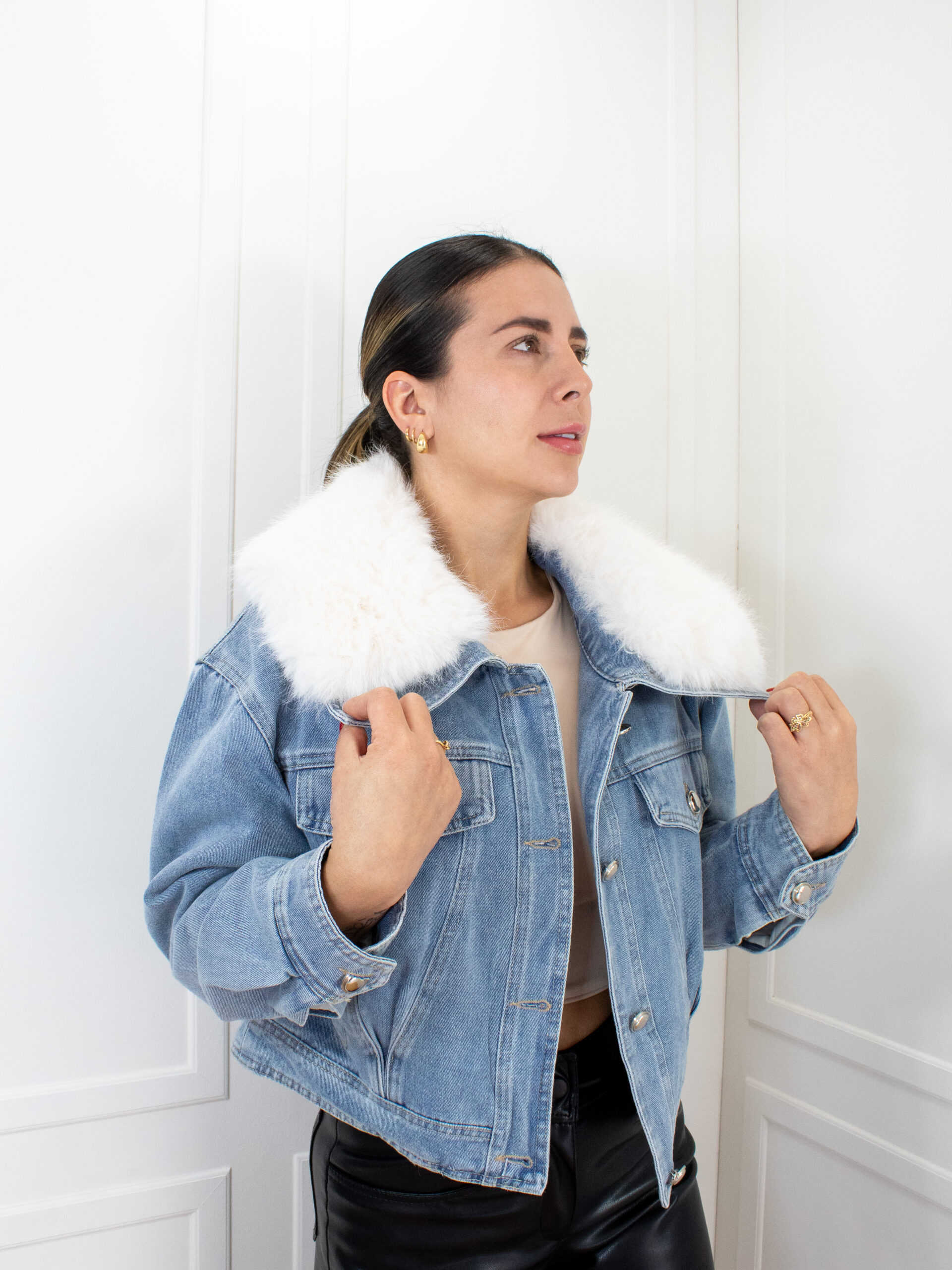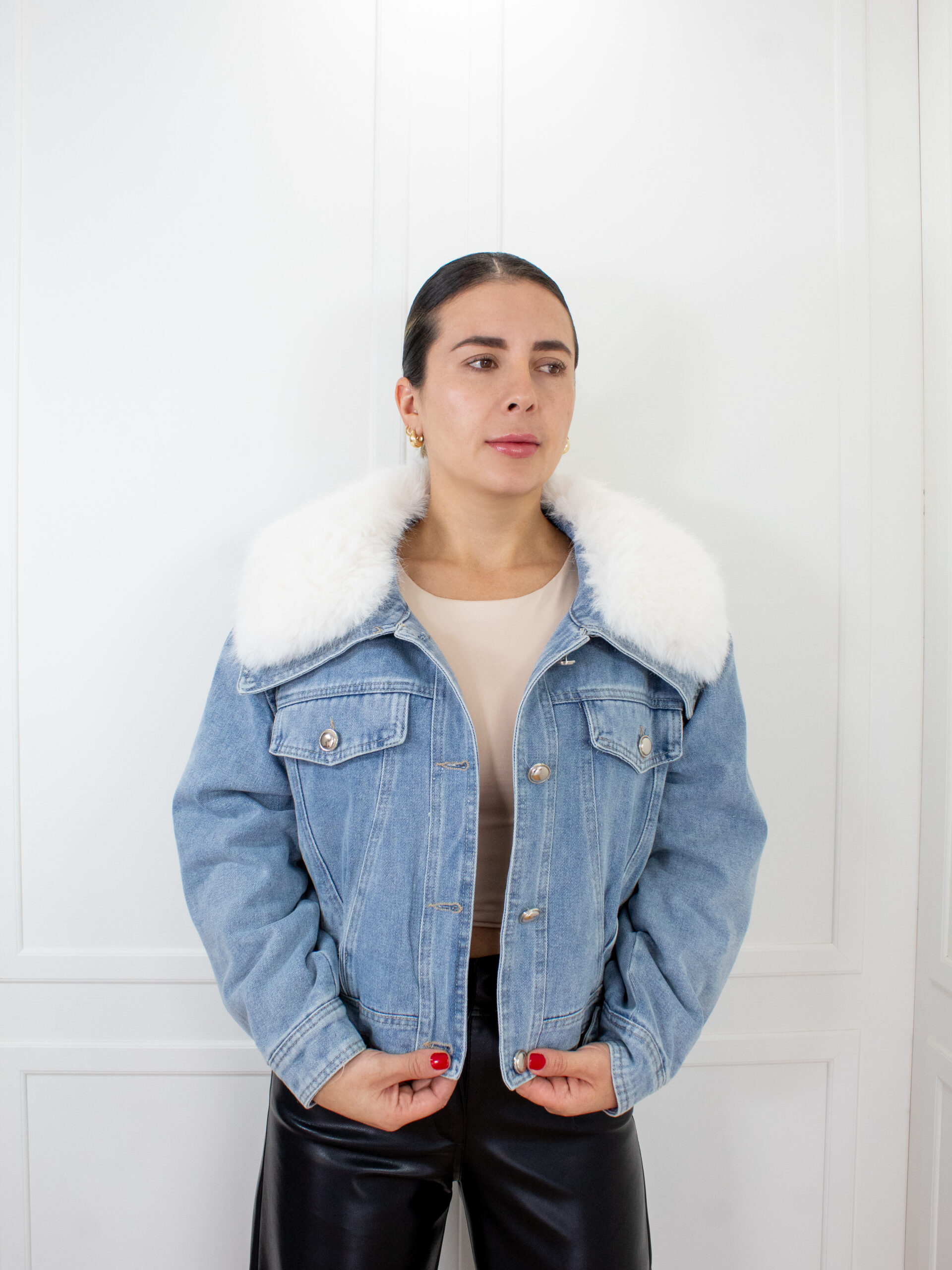 Esta chaqueta denim está diseñada para destacar por su versatilidad y estilo. Su silueta moderna se complementa con un cuello peludo removible, permitiéndote crear dos looks en una sola prenda: uno cálido y sofisticado, y otro clásico y minimalista. Confeccionada en denim de excelente calidad y acabados cuidados, es ideal para elevar tus outfits de temporada sin perder comodidad ni estilo.