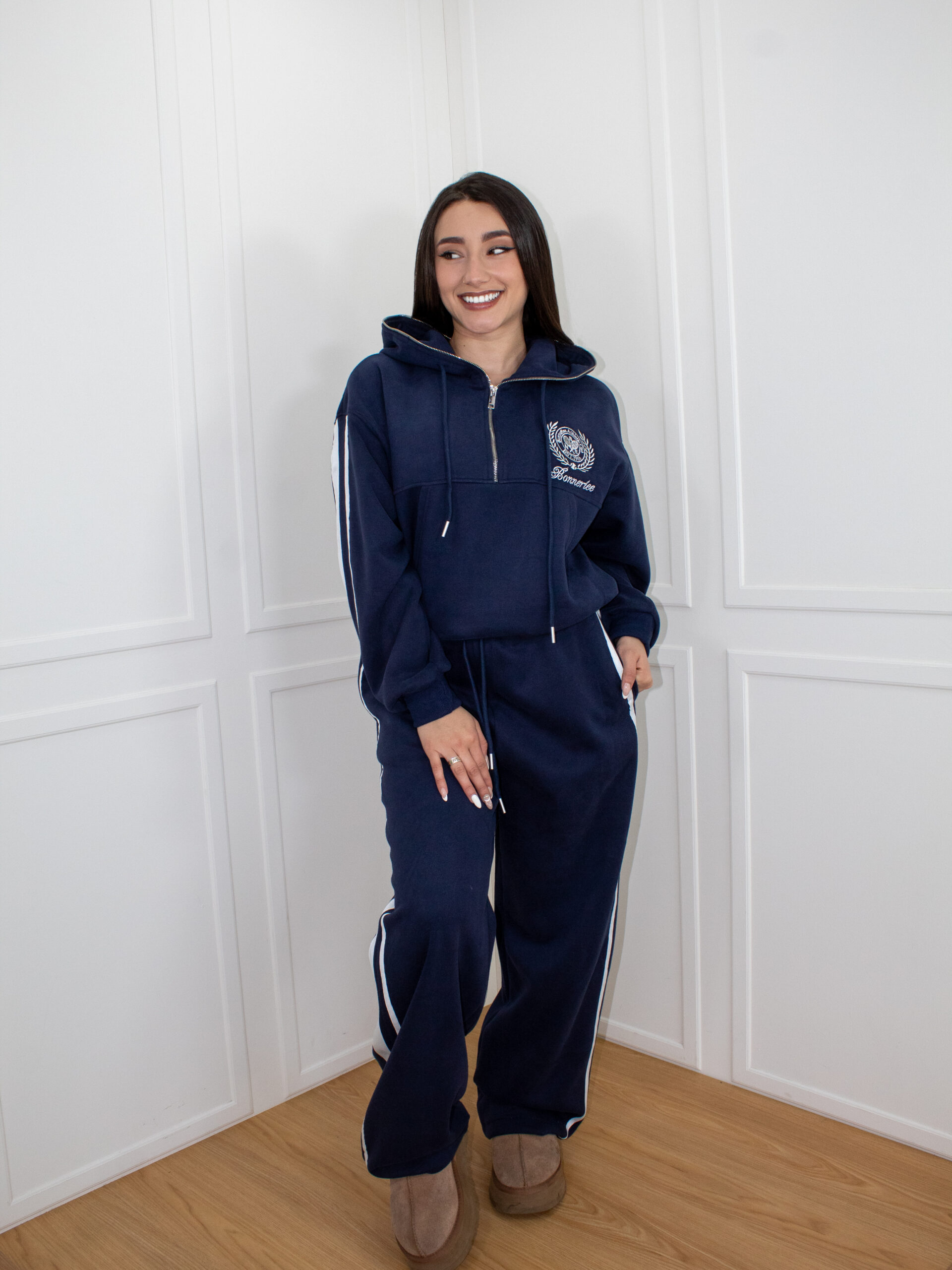 Conjunto ideal para uso diario o actividades ligeras. El buzo cuenta con capota y cierre frontal parcial para mayor practicidad, además de un corte moderno que se adapta bien al cuerpo sin limitar el movimiento. El pantalón incluye pretina ajustable y caída recta con detalle lateral, Fabricado en material suave y de buena durabilidad, pensado para quienes buscan estilo y confort en una sola prenda.