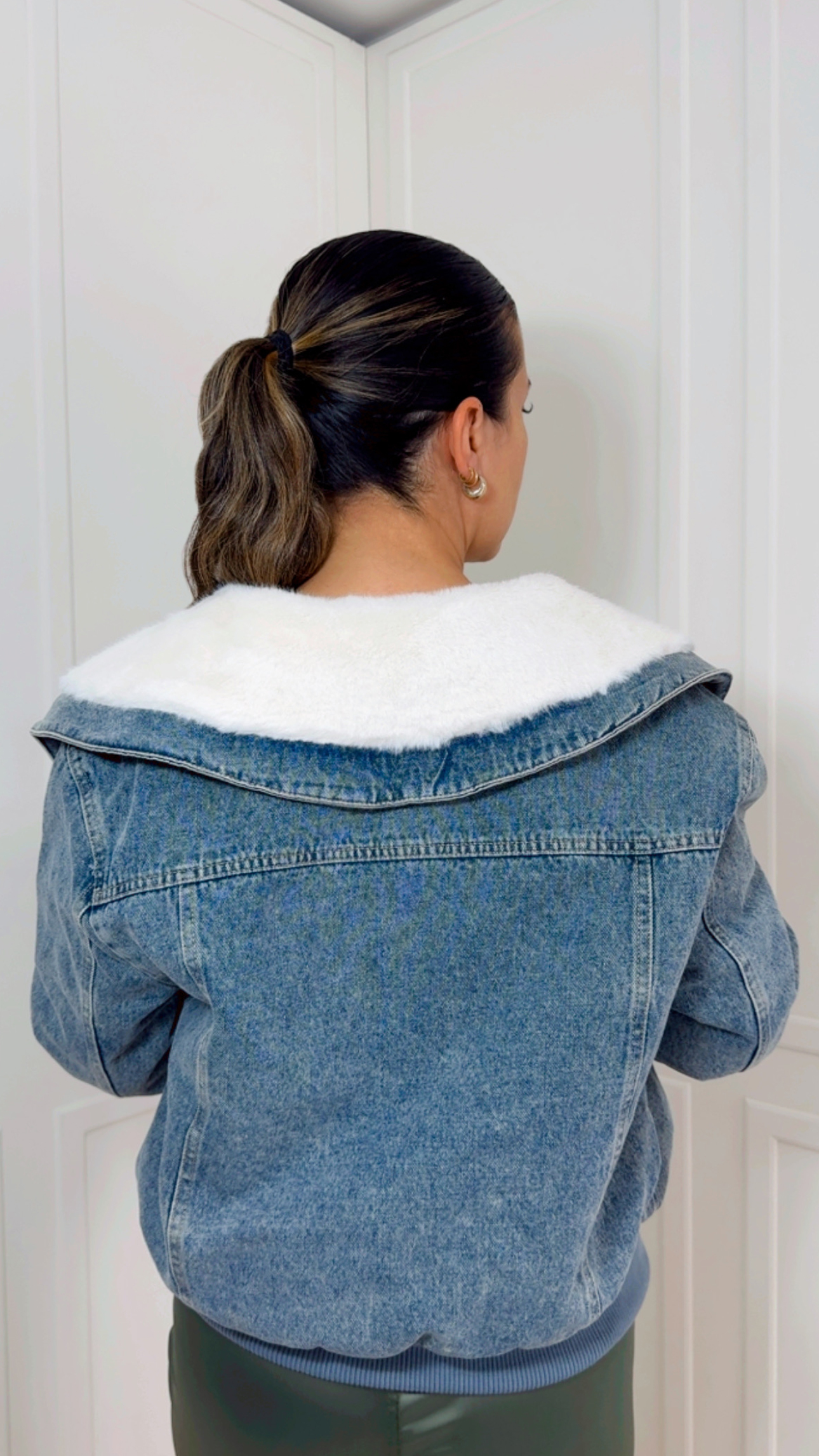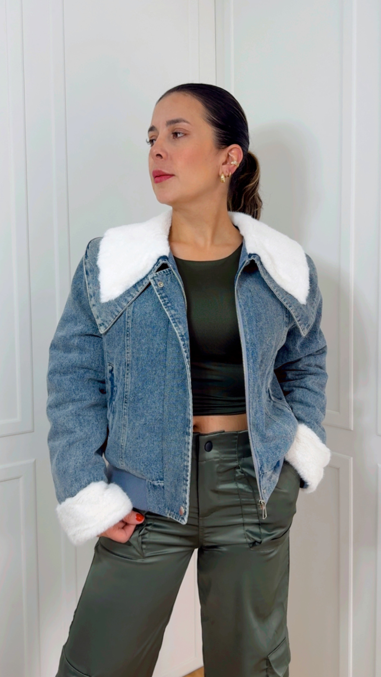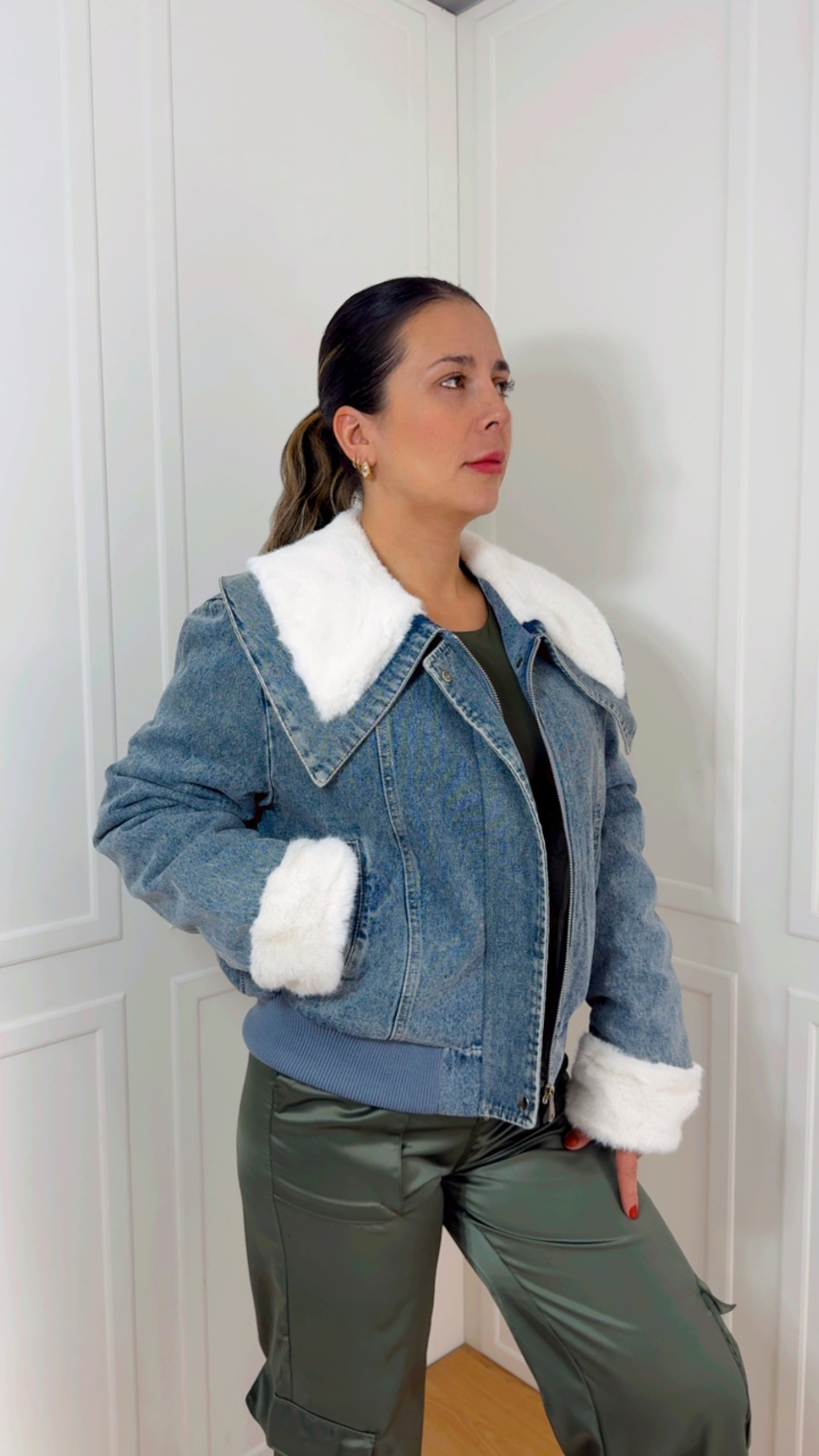 La Chaqueta Zaandam combina estilo urbano con un toque invernal elegante. Fabricada en denim de alta calidad, incluye cuello y puños en peluche blanco tipo borrego que aportan contraste, comodidad y calidez. Su silueta es ligeramente amplia, con ruedo ajustado tipo bomber para un ajuste cómodo y moderno.